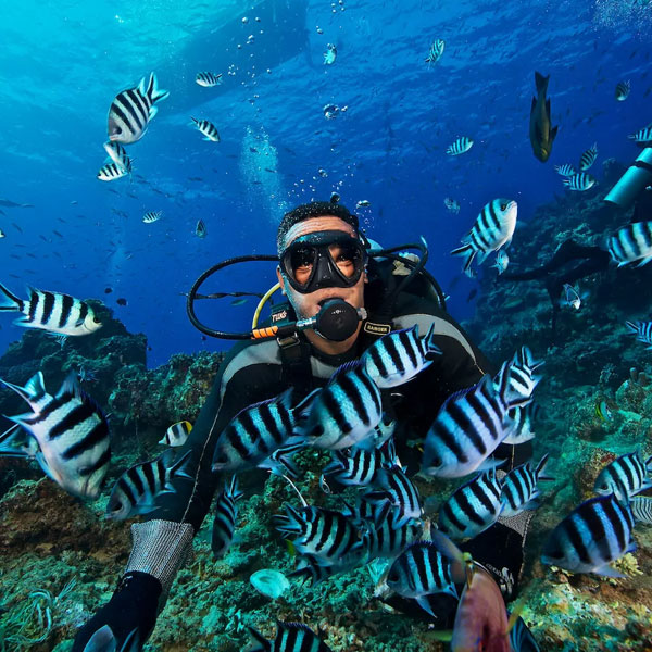 Este paradisíaco destino se encuentra en las cálidas aguas del océano Índico y alberga un fondo marino lleno de vida cuya belleza es simplemente indescriptible. El Blue Spirit de Blue O Two nos permite despertarnos sobre el punto de buceo, para sólo tener que equiparnos y saltar al agua.