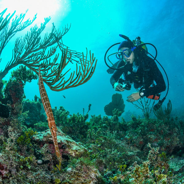 Experiencia Boutique. Rodeado de manglares, Meridian Adventure Dive Resort ofrece una experiencia que combina buceos en el destino de mayor concentración de fauna y flora del mundo, safaris de paddlesurfing, caminatas por la selva y exploraciones de cuevas.